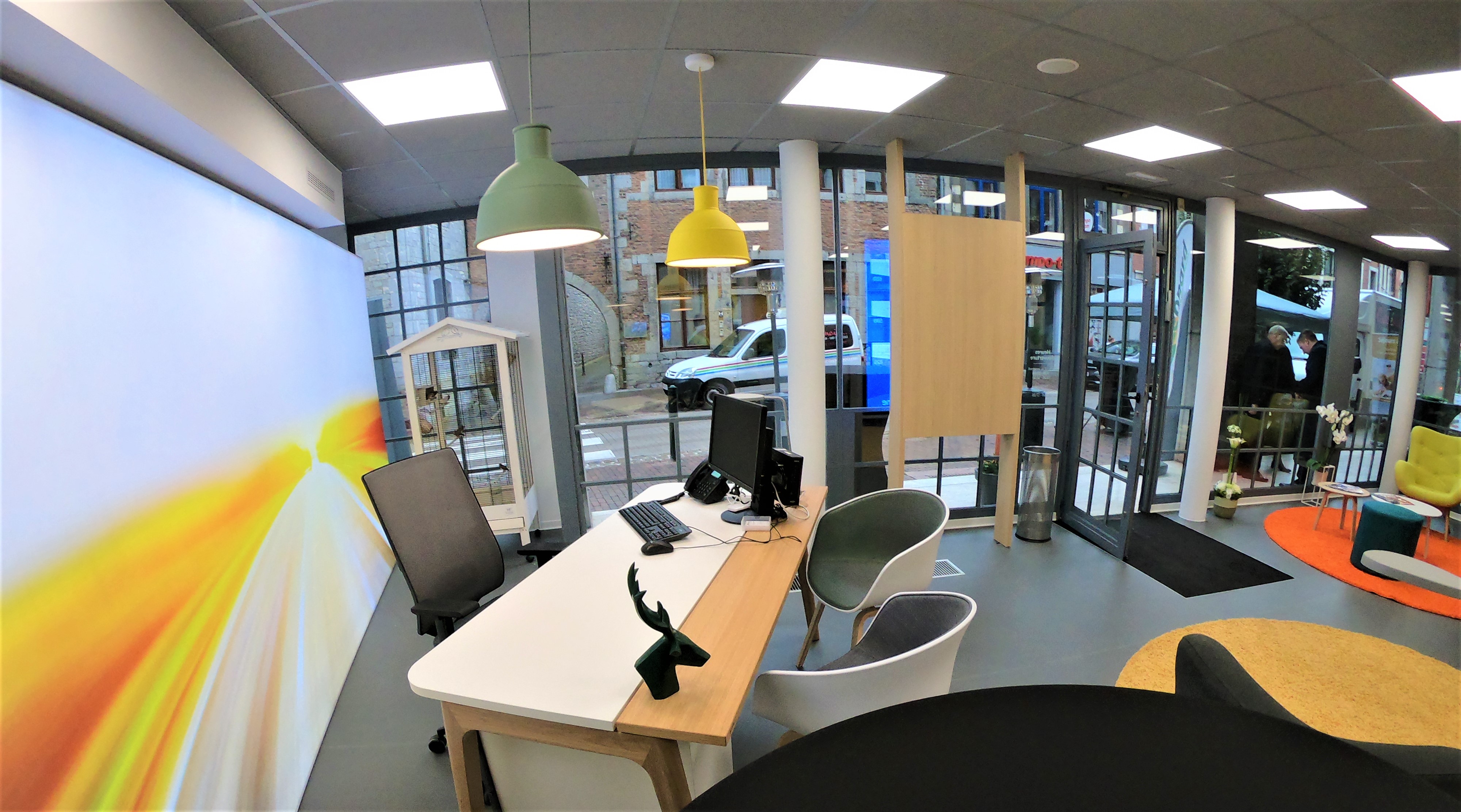 Réinventer l’expérience client au sein d’une agence de voyages, c’était le défi de Voyages Léonard en réaménageant leurs locaux de Marche. L’une des premières préoccupations était de gérer l’attente. Le client y est de moins en moins disposé. Il fallait donc la rendre la plus agréable possible. Deux options s’offrent au visiteur : soit il patiente dans un salon confortablement assis et équipé du wifi, soit il peut déambuler dans la « bibliothèque-voyages » où brochures, livres et photos de voyages sont à sa disposition pour l’inspirer dans le choix de sa prochaine destination de vacances. Une fois son tour venu, un conseiller-voyages l’accompagnera dans le choix de ses vacances, le conseillera et l’assistera dans ses démarches de réservations. Lumineux, chaleureux et inspirant, le design a été réfléchi pour rassurer et apaiser. L’objectif était que le client se sente "comme à la maison" et les premiers retours portent à croire que cet objectif est atteint.