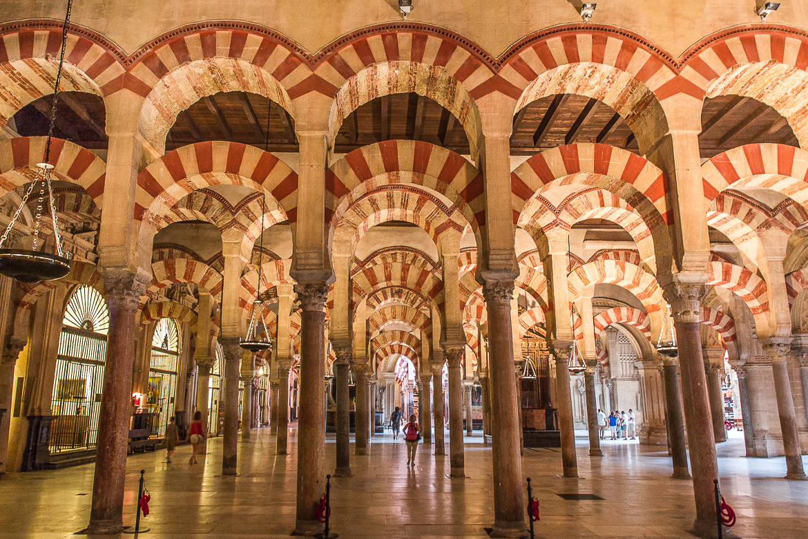 Pour comprendre certaines visites ou détails de ce voyage, il faut se rappeler que l’Andalousie a été, après la période romaine, envahie et habitée par les Maures venus d’Afrique et ceci entre le VIIIe et le XIIe siècles. C’est ce que nous allons vérifier, une fois de plus en visitant Cordoue. Avec une guide locale, nous entrons dans la vieille ville et nous sommes alors dans l’ancienne Medina et ses ruelles typiques. Quelques vestiges de mosquées mais aussi de synagogues dans le quartier juif complètent cette première partie. La suite de la visite est une véritable surprise. Les Maures avaient construit une Mosquée ; agrandie plusieurs fois, elle était à l’époque la plus grande du monde. Lorsque les Chrétiens reprirent Cordoue, ils voulurent la détruire mais le Roi s’y opposa. C’est ainsi que l’Eglise en prit possession, la désacralisa et l’Evêque y installa sa Cathédrale . C’est un cas unique au monde où une Cathédrale se trouve dans une Mosquée ! Et c’est grandiose …